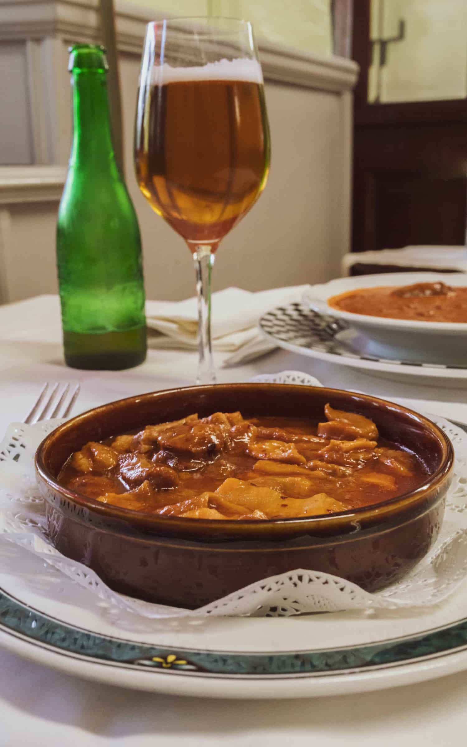 La propuesta de Jesús Sánchez pasa por probar la especialidad de la casa: los callos. Un plato que, por su contundencia, armoniza con el carácter intenso, el cuerpo y los aromas florales —que aporta el lúpulo Saaz— de una Alhambra Reserva 1925. Una cerveza hecha sin prisa, mimando cada fase de la elaboración.